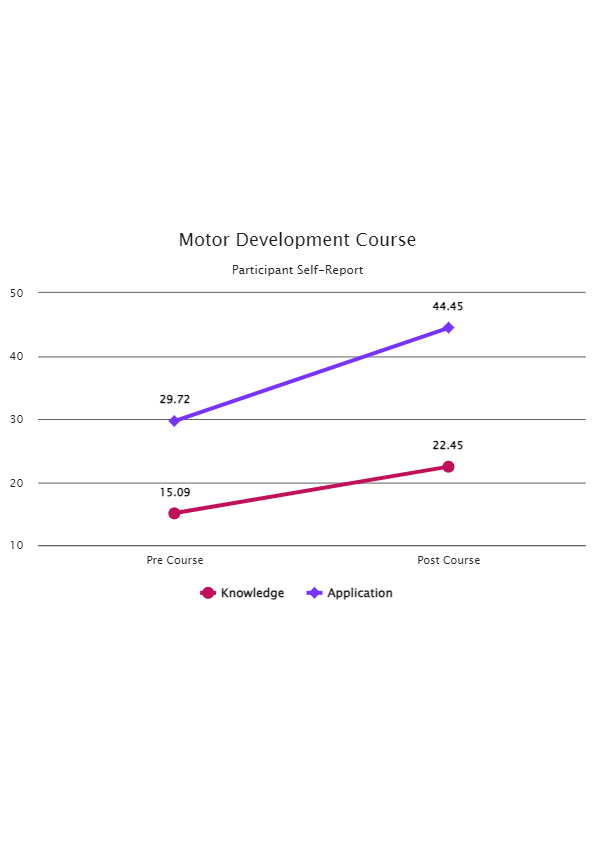The charts below represent data from participant surveys about their knowledge and practice change following a course.